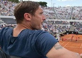 L'ex capitano della Roma ha giocato e vinto una partita contro il campione di tennis tra cori e applausi del ...