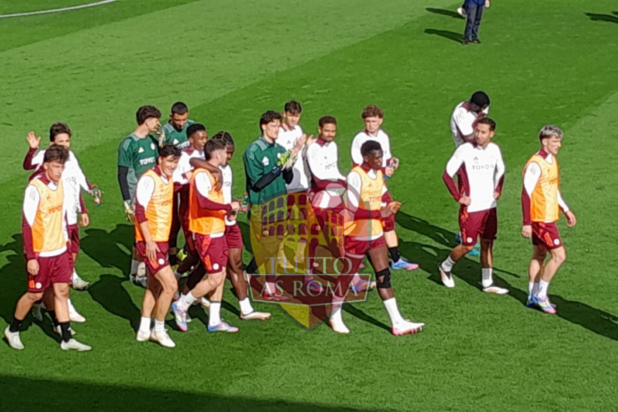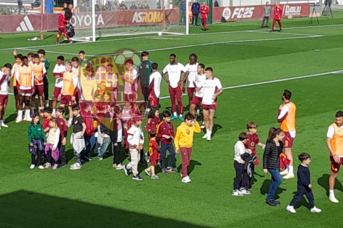 16.18 – Inizia partitella con focus sul possesso palla, senza portieri. Squadra con fratino: Celik, Hummles, Reale, Angelino; Cristante, Soulè, Saelemaekers, Gourna-Douath, Pellegrini Shomurodov. Bianchi: Rensch, Mancini, Sangare, N’Dicka, Paredes, Kone, Baldanzi, Graziani, Zefi, Salah-Eddine, Pisilli