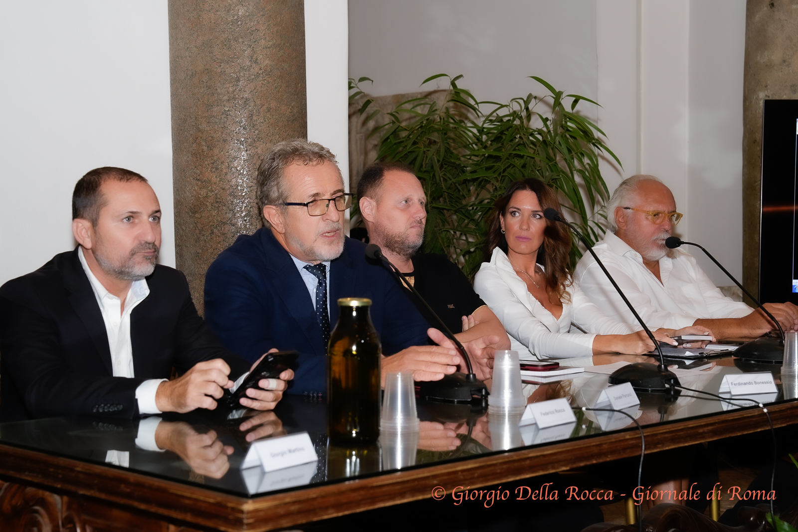 A fare gli onori di casa il Presidente della Commissione Sport di Roma Capitale, Nando Bonessio e il Presidente della Commissione Trasparenza di Roma Capitale, Federico Rocca (anche Presidente del Roma Club Campidoglio).