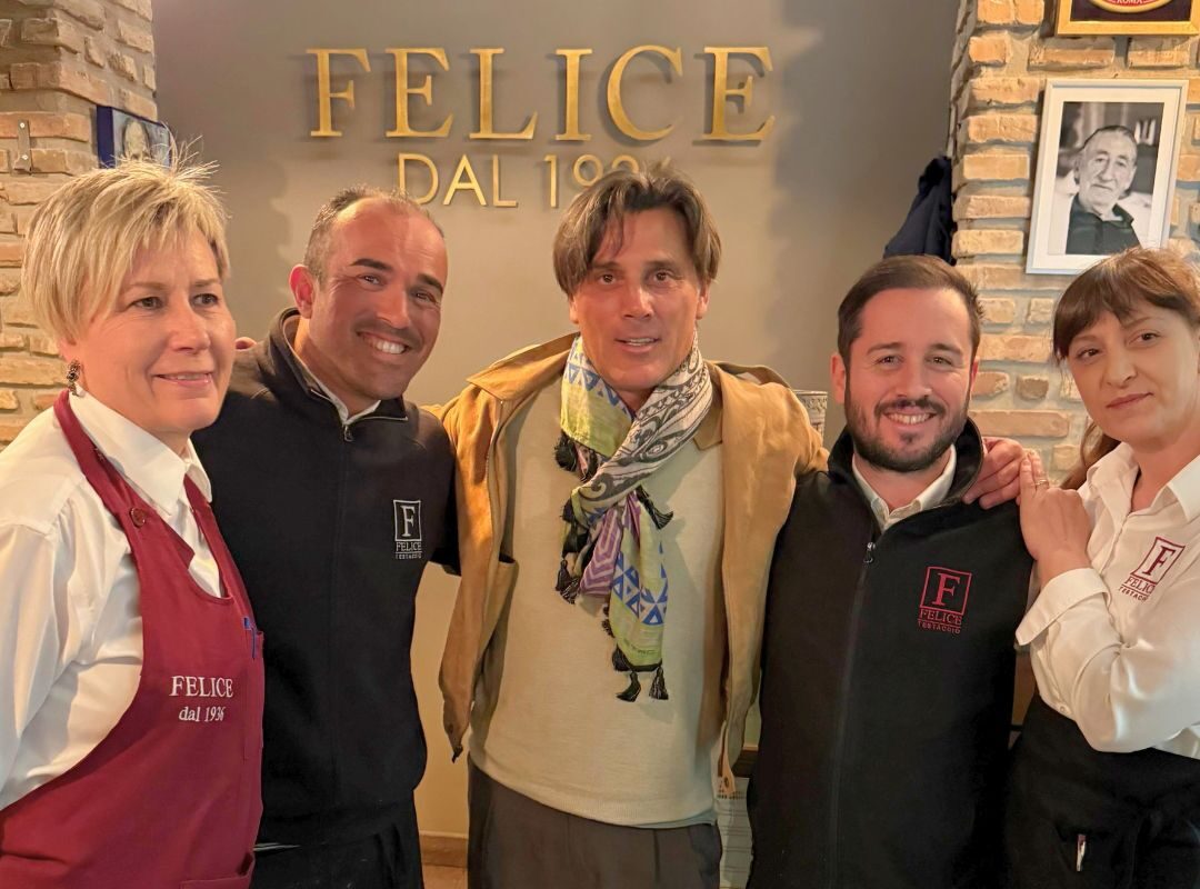 Tanti nomi si son fatti per la prossima panchina giallorossa e uno di loro è quello dell’ex areoplanino, Vincenzo Montella, che oggi è tornato nella Capitale e a pranzato a Testaccio, “Da Felice”: “”Grazie per essere tornato a trovarci”, recita il post co la foto la foto insieme a tutto lo staff del ristorante.