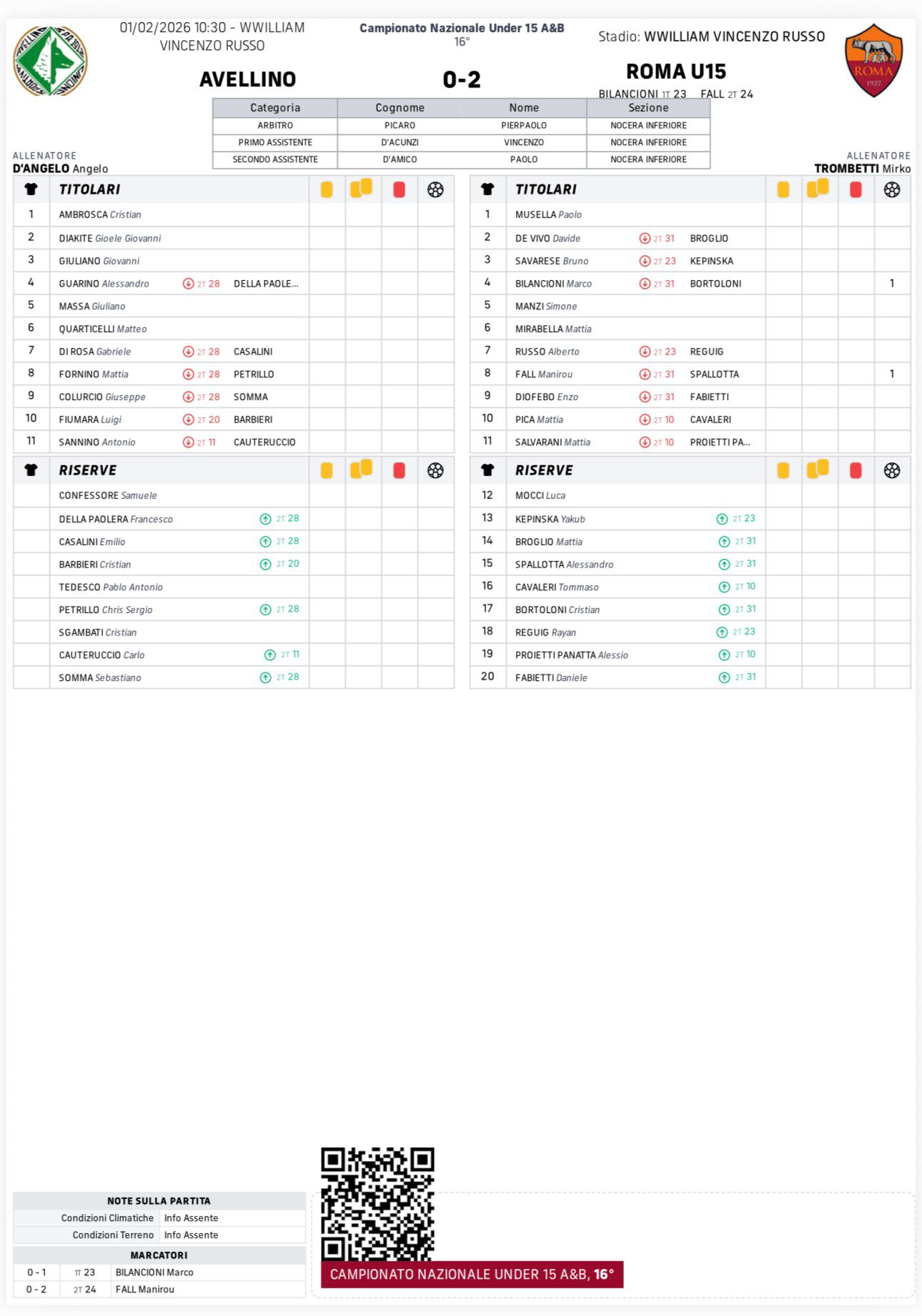 • Tabellini Under 15 AS ROMA