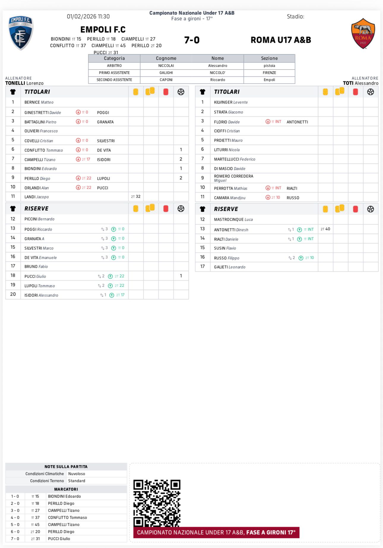 EMPOLI-ROMA 7-0