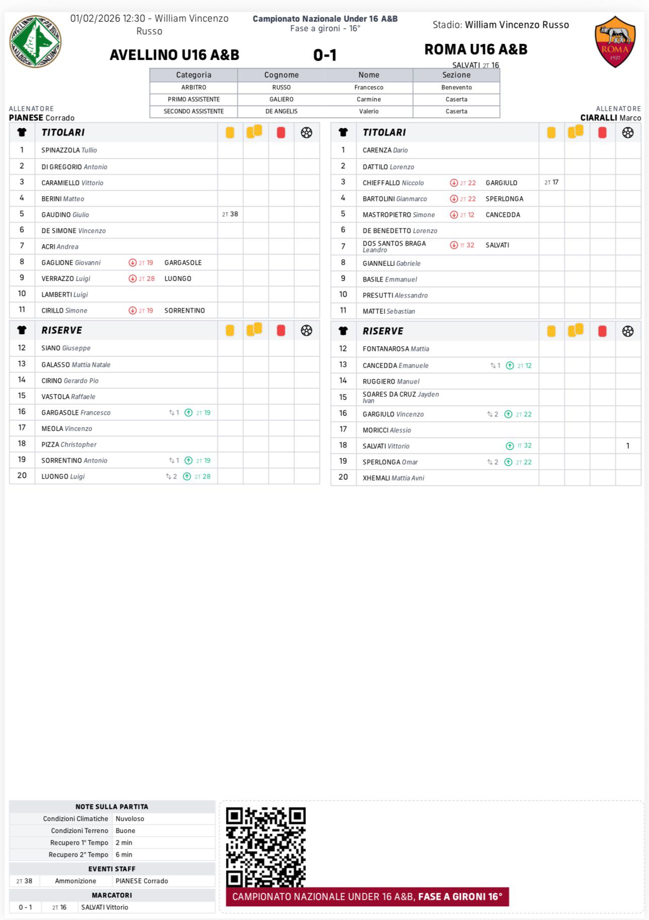 • Tabellini Under 16 AS ROMA