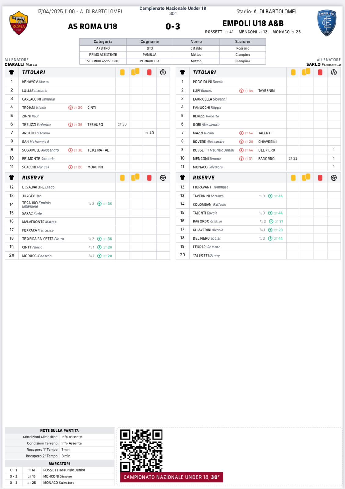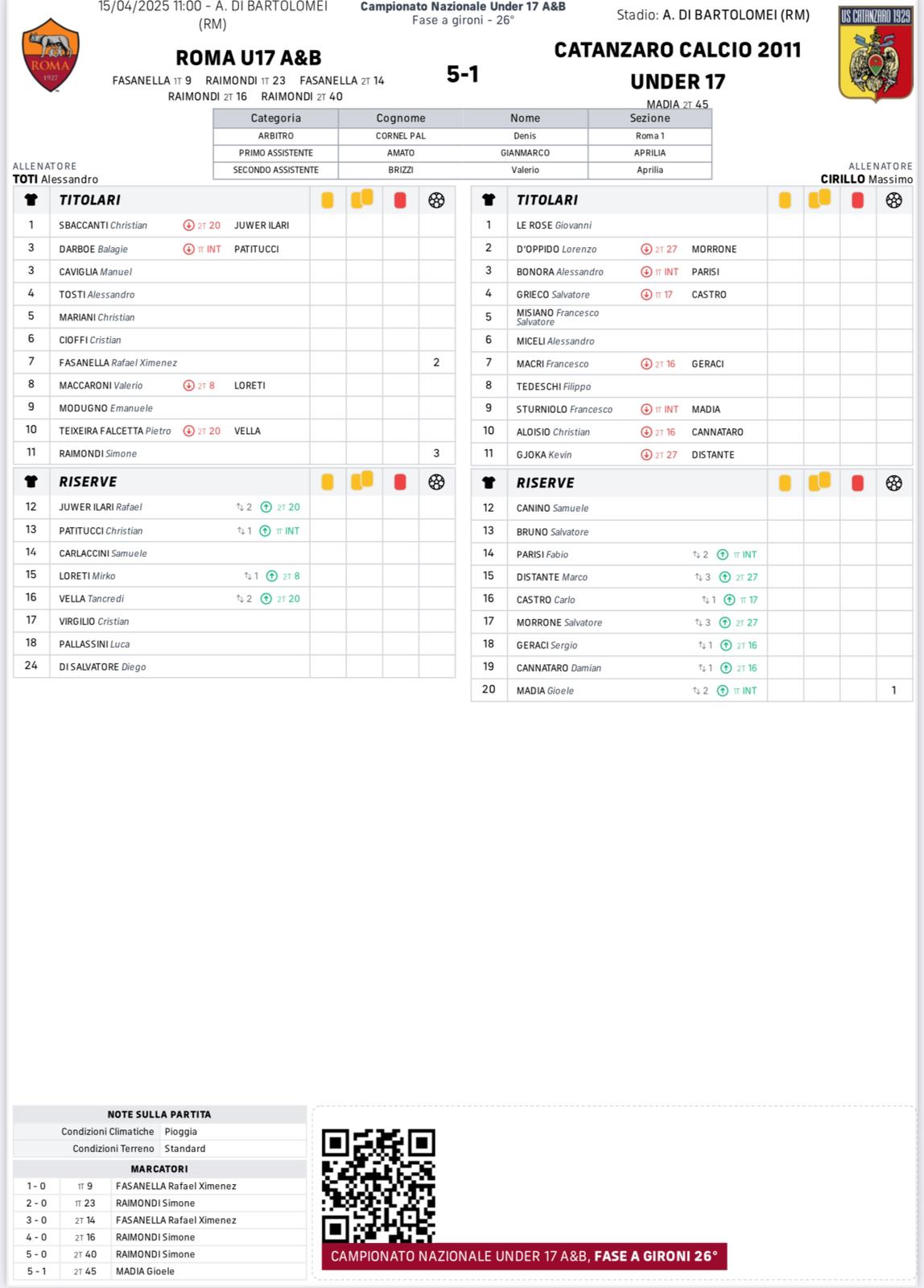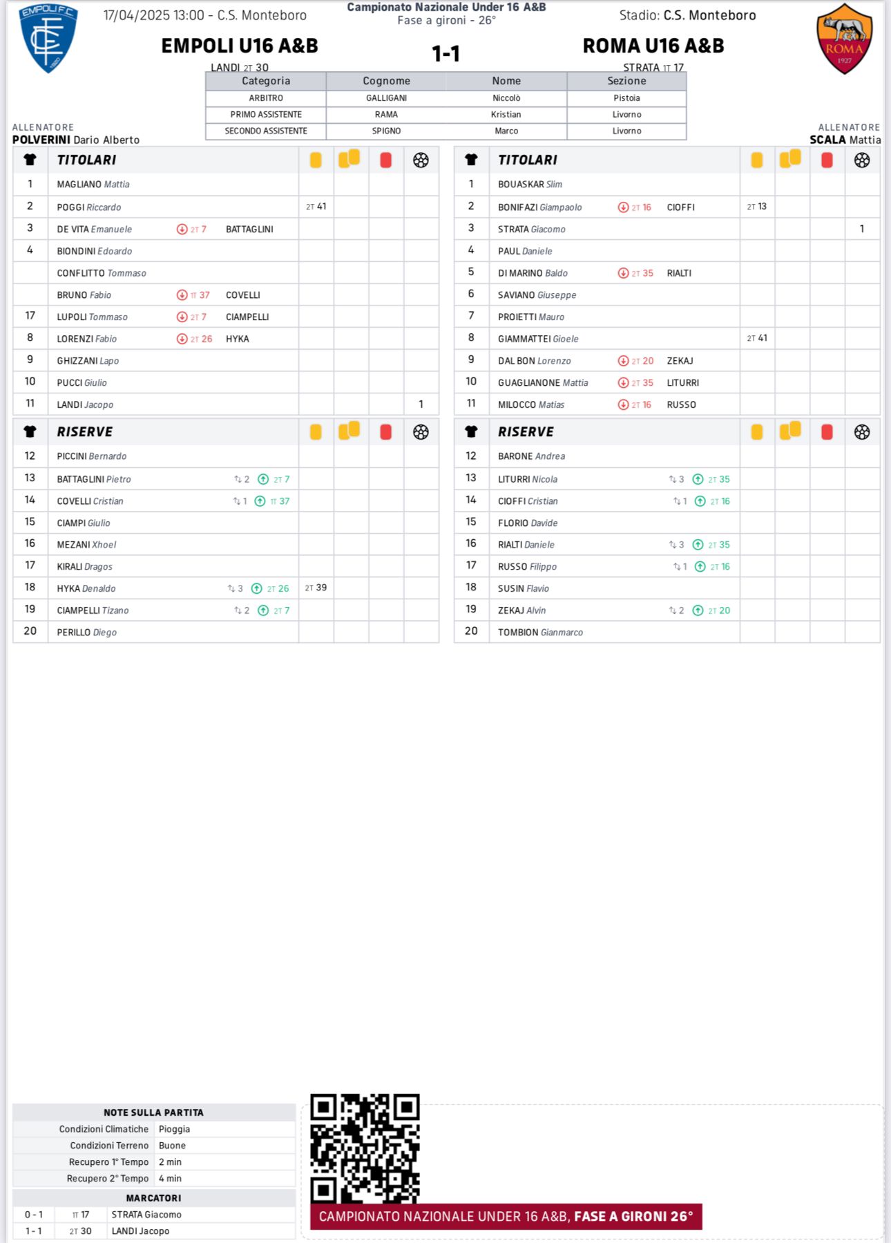 UNDER 17 – PER I RISULTATI E LA CLASSIFICA CLICCARE QUI