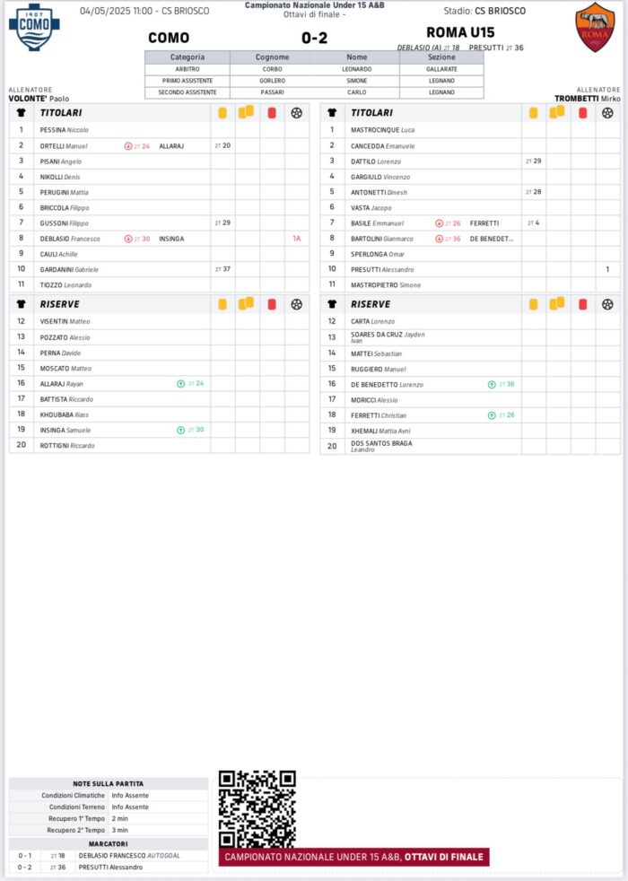 in Primo Piano, Settore Giovanile AS ROMA, Tabellini Under 15 AS ROMA, Tabellini Under 16 AS ROMA, Tabellini Under 17 AS ROMA, Under 15 AS ROMA, Under 16 AS ROMA, Under 17 AS ROMA