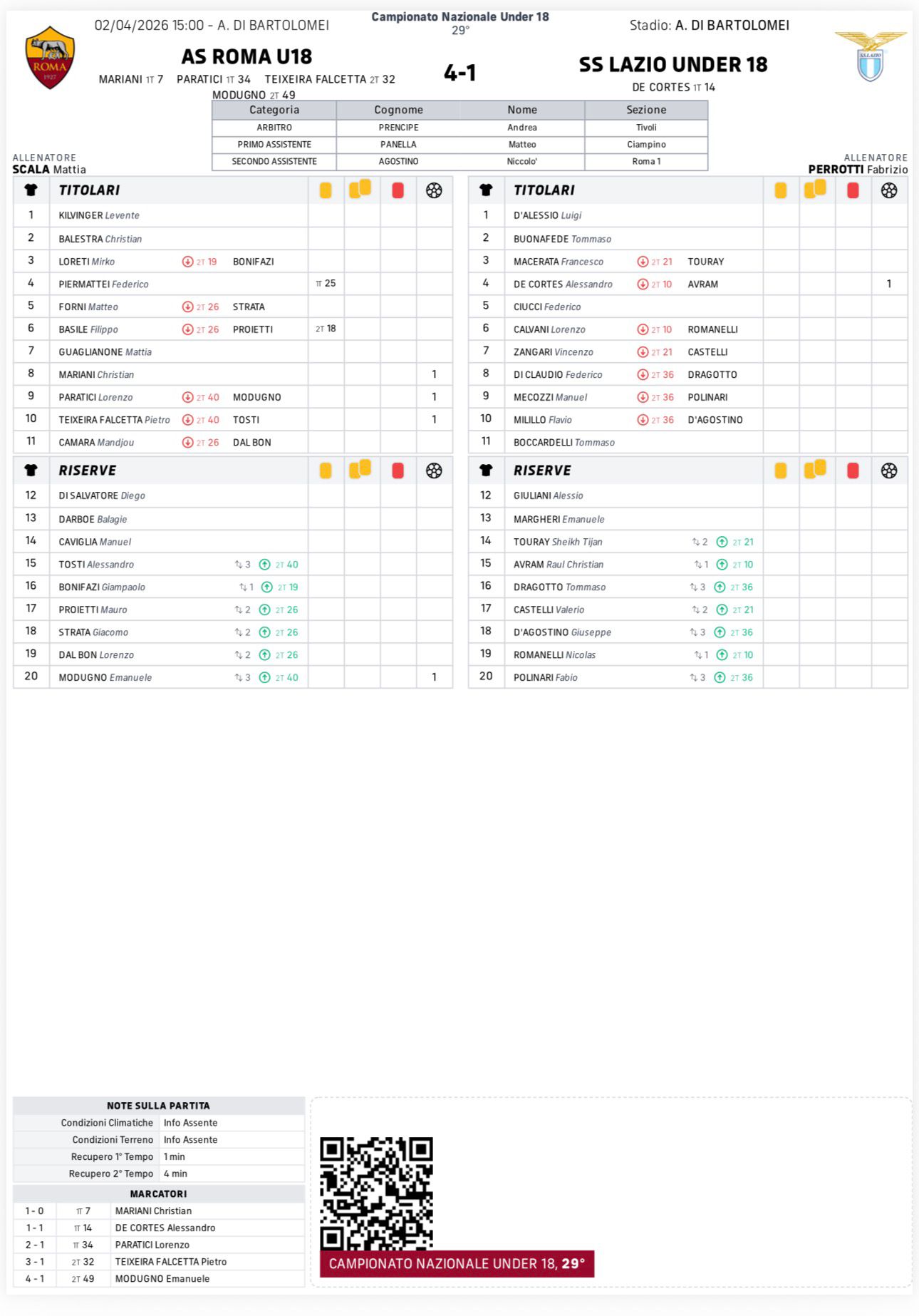 La Roma detta legge e cala il poker nel derby, aggiudicandosi la stracittadina e continuando la rincorsa all’Inter capolista. Mariani, Paratici, Teixeira e Modugno hanno trascinato i giallorossi verso la vittoria e annullato il momentaneo 1-1 griffato da De Cortes. Razocinio, accortezza e aggressività hanno condito il trionfo giallorosso, a dispetto di una Lazio inerme di fronte al palleggio dei ragazzi di Trigoria. Otto gare al termine, un cammino che rimane tortuoso, ma la strada è quella giusta, e i “soli” 3 punti dall’Inter lasciano aperto un campionato dall’esito ancora tutto da scrivere.