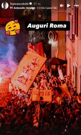 Francesco Totti, storica bandiera della Roma, si è unito ai festeggiamenti per il club e, attraverso una storia pubblicata sul suo profilo, ha voluto fare gli auguri alla società giallorossa.