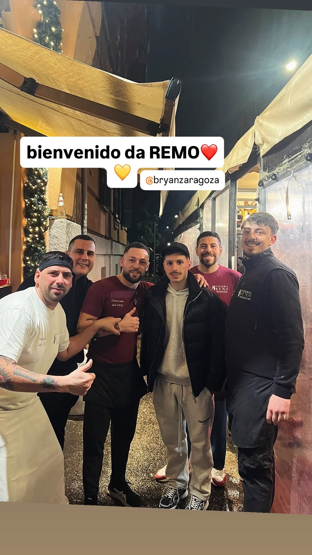 Il neo giocatore della Roma, Bryan Zaragoza, arrivato domenica e oggi ha svolto il primo allenamento con i compagni, si è concesso una serata di relax con l’entourage a Testaccio, in una nota pizzaria del posto immortalando la serata con il personale della stessa.
