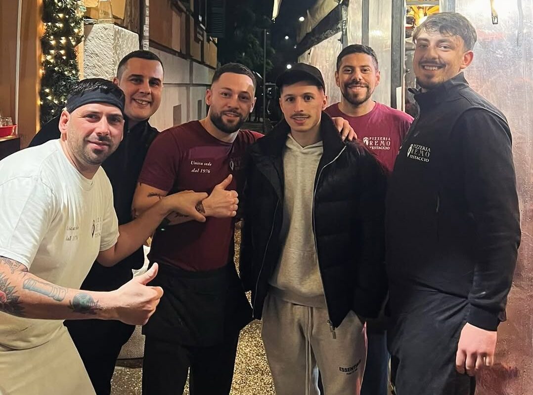 Il neo giocatore della Roma, Bryan Zaragoza, arrivato domenica e oggi ha svolto il primo allenamento con i compagni, si è concesso una serata di relax con l’entourage a Testaccio, in una nota pizzaria del posto immortalando la serata con il personale della stessa.