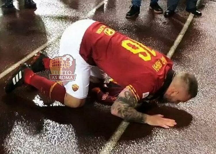 LA SUD – «Ci hai rappresentato in campo per diciotto anni, da oggi la tua curva ti rappresenterà per sempre. Siamo tutti DDR». Ecco, i tifosi davanti ai quali Daniele si è inginocchiato baciando terra. Quelli sono schierati, tutti con lui e queste parole esposte ad inizio partita ne sono la testimonianza. Per la gente «De Rossi è il romanismo». Che ora in tanti vedono come un problema, non con un valore. Un valore oltre le vittorie, che da queste parti scarseggiano, sono utopie. Ecco perché ci si attacca ai simboli, quelli che si tingono di giallo e rosso.