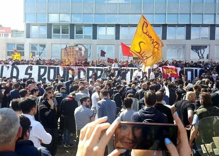 Duemila tifosi inferociti sotto la sede. Cori contro Pallotta, Baldissoni e Baldini