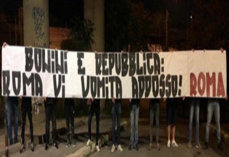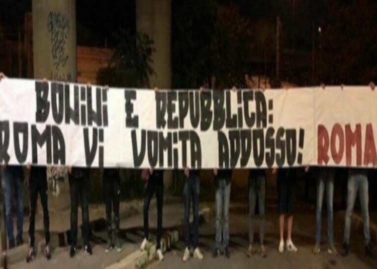 Neanche con la forza del giornalismo di inchiesta, che documenta fatti e circostanze, rivela trame e svela orditi. Un pezzo di città non lo accetta. E quindi lo striscione “Bonini e Repubblica, Roma vi vomita addosso!”. E quindi, ancora, le scritte sui muri della mattina dopo: “Austini, Bonini, Mensurati, chi tocca l’As Roma muore!”. Perché Roma a volte è così, rigurgita di notte quel che mastica di giorno. Ci risiamo. È una storia che è già capitata, e che capiterà ancora.