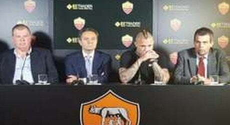 PEROTTA (: “Volevo ringraziare l’AS Roma per la disponibilità trovata soprattutto nell’area marketing. Esser vicini allo sport è di lungo corso, c’è un link naturale tra sport, finanza, media e tecnologia. La vicinanaza con il Presidente Pallotta, perchè sposiamo la strategia lineare messa in piedi dal Presidente e dal suo staff. Siamo stati ospiti a New York per vedere i piani della nuova Roma e siamo allineati con i loro progetti. Siamo una piattaforma finanziaria che permette di tradare online. Siamo presenti in tutto il mondo. Tra noi e la Roma è solo l’inizio di una partnership di lunga gittata. È l’inizio di un percorso che ci porterà a nuovi successi. Vicino a me c’è un belga-romano come Nainggolan che parla anche con un accento romano”