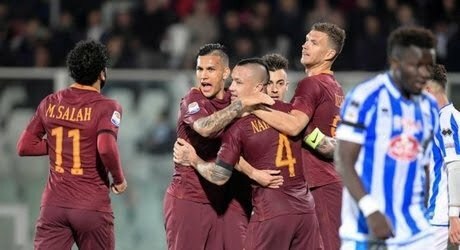 La Roma resta la più autorevole pretendente al secondo posto, si riporta a quattro punti di vantaggio sul Napoli a cinque giornate dalla fine. Il Pescara saluta la serie A, perché da ieri la retrocessione è matematica. Zeman nella prossima stagione proverà a risalire, ha accettato di guidare una squadra non sua e già affondata per provare a fare un lavoro a lunga scadenza. La Roma ha vinto per 4-1, il punteggio poteva essere anche più rotondo, perché nella ripresa il Pescara si è allungato lasciando campo aperto alla squadra giallorossa, alla sesta vittoria consecutiva in trasferta. In realtà il Pescara ha retto per quasi tutto il primo tempo, ma da quando la Roma è passata in vantaggio non c’è stata più partita. Ieri la squadra di Spalletti, al di là della consistenza tecnica dell’avversario, ha dato la dimostrazione di essere in salute, nella settimana che porta al derby, che precede altri due impegni decisivi contro Milan e Juve.