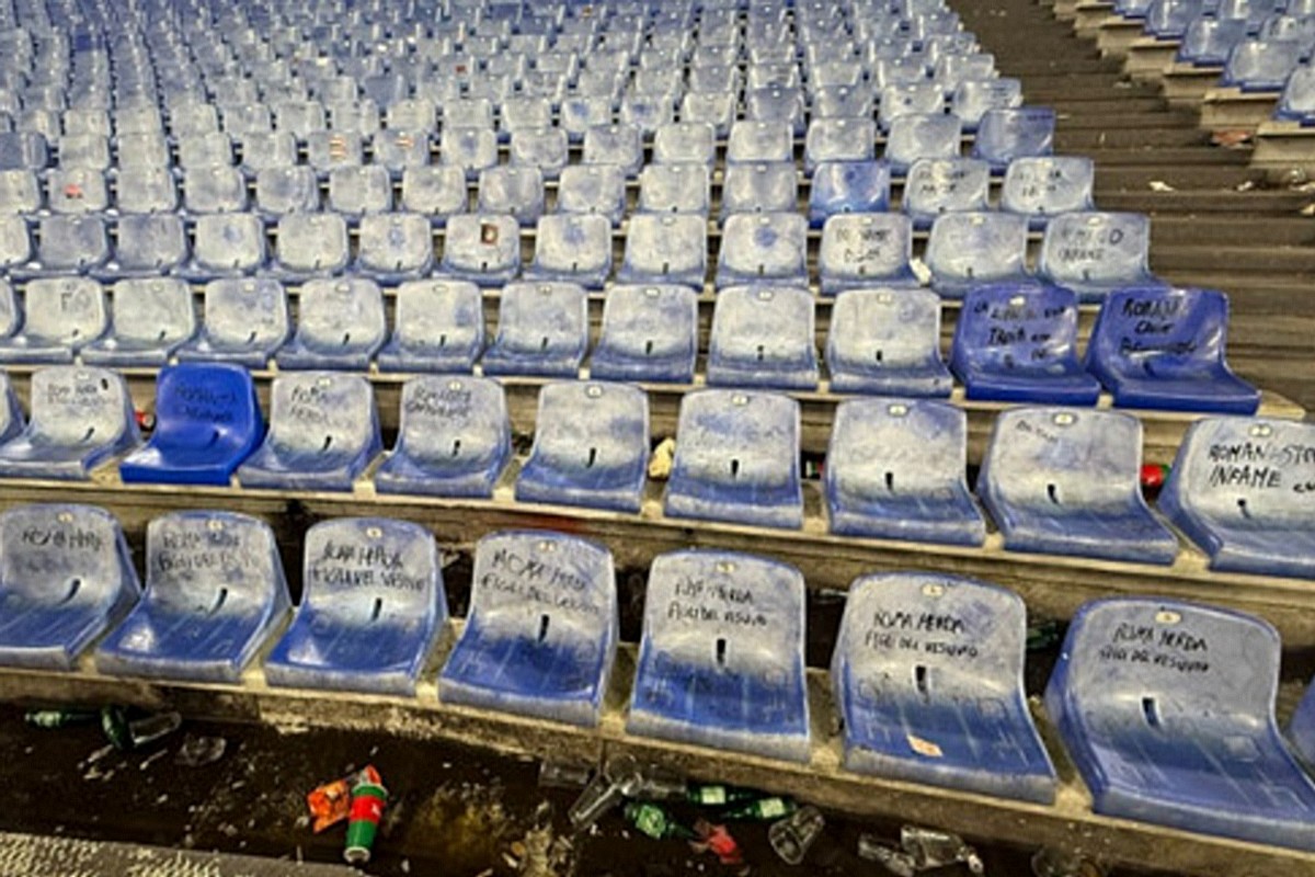 CURVA SUD Seggiolini imbrattati e scritte contro i romanisti