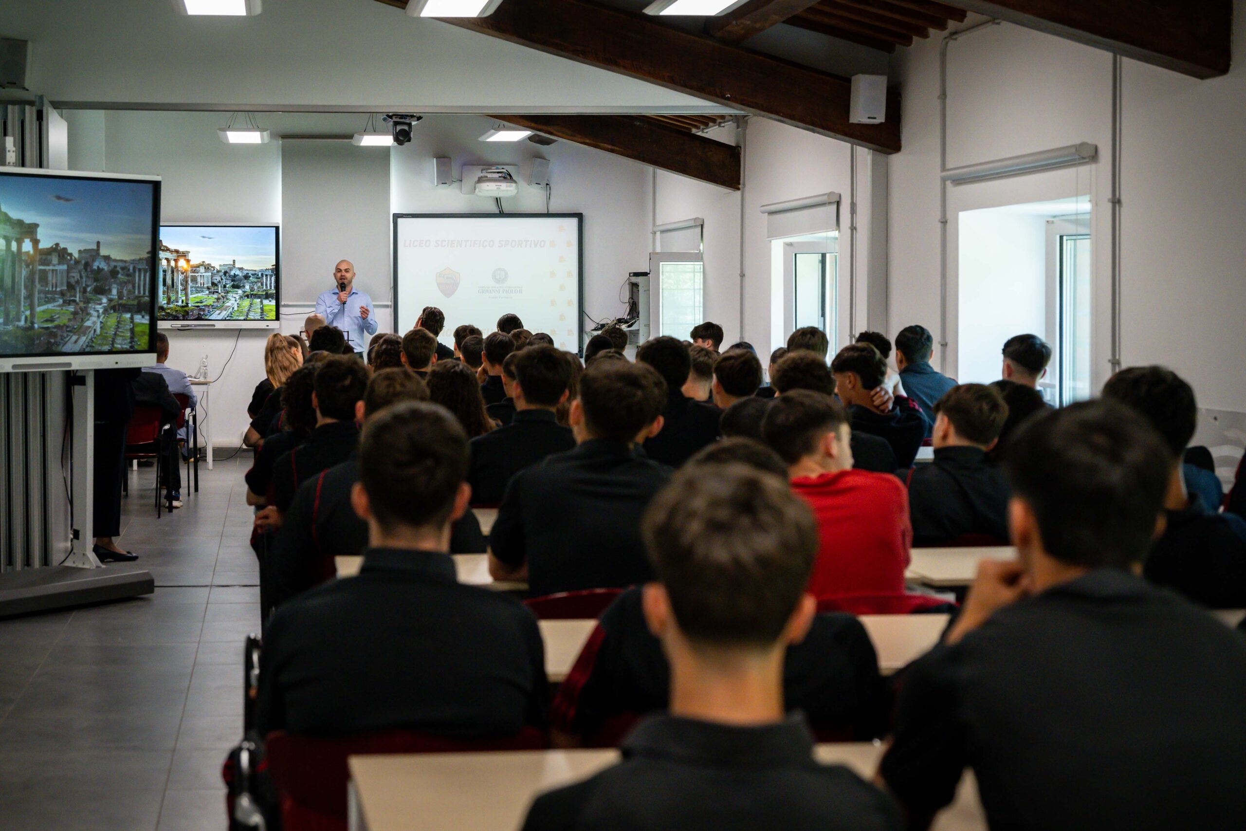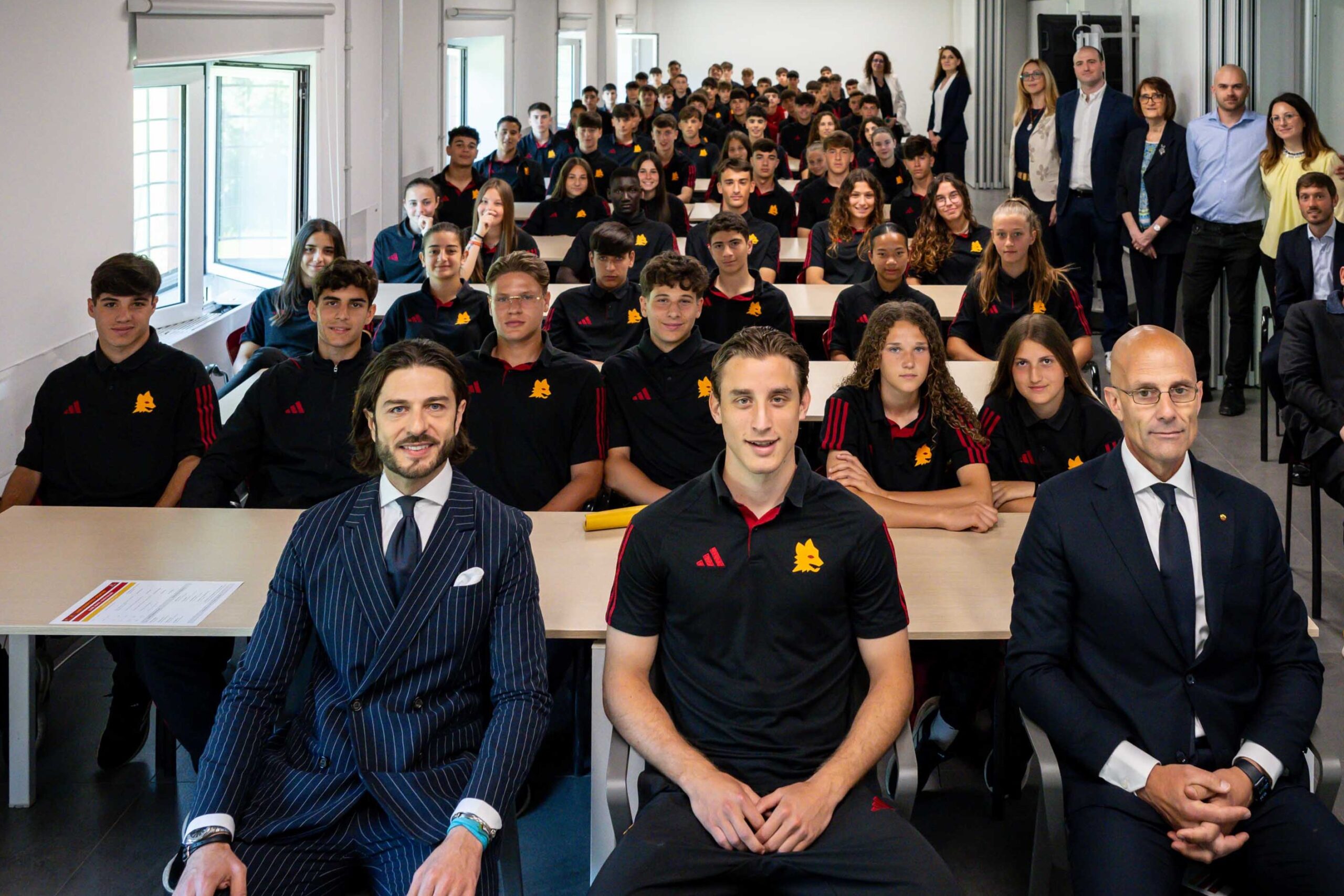 L’evento, organizzato in partnership con l’Istituto Paritario “Giovanni Paolo II” di Ostia, ha coinvolto circa settanta studenti calciatori e calciatrici delle giovanili del Club ai quali si è aggiunto anche Edoardo Bove, ex alunno del Liceo di Trigoria, oggi studente universitario e quindi simbolo del percorso che il Club si augura per ogni ragazzo delle giovanili che frequenta la scuola.