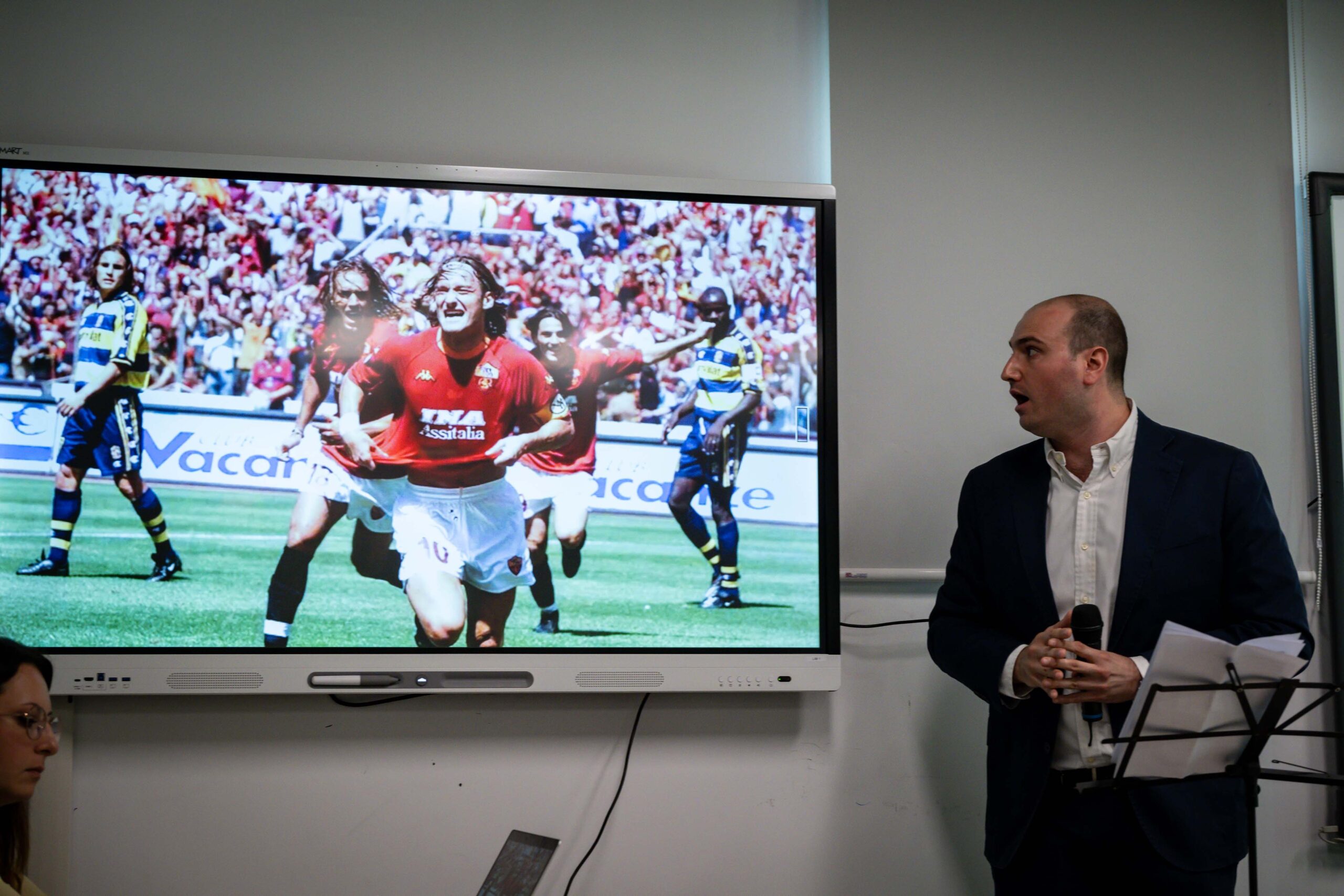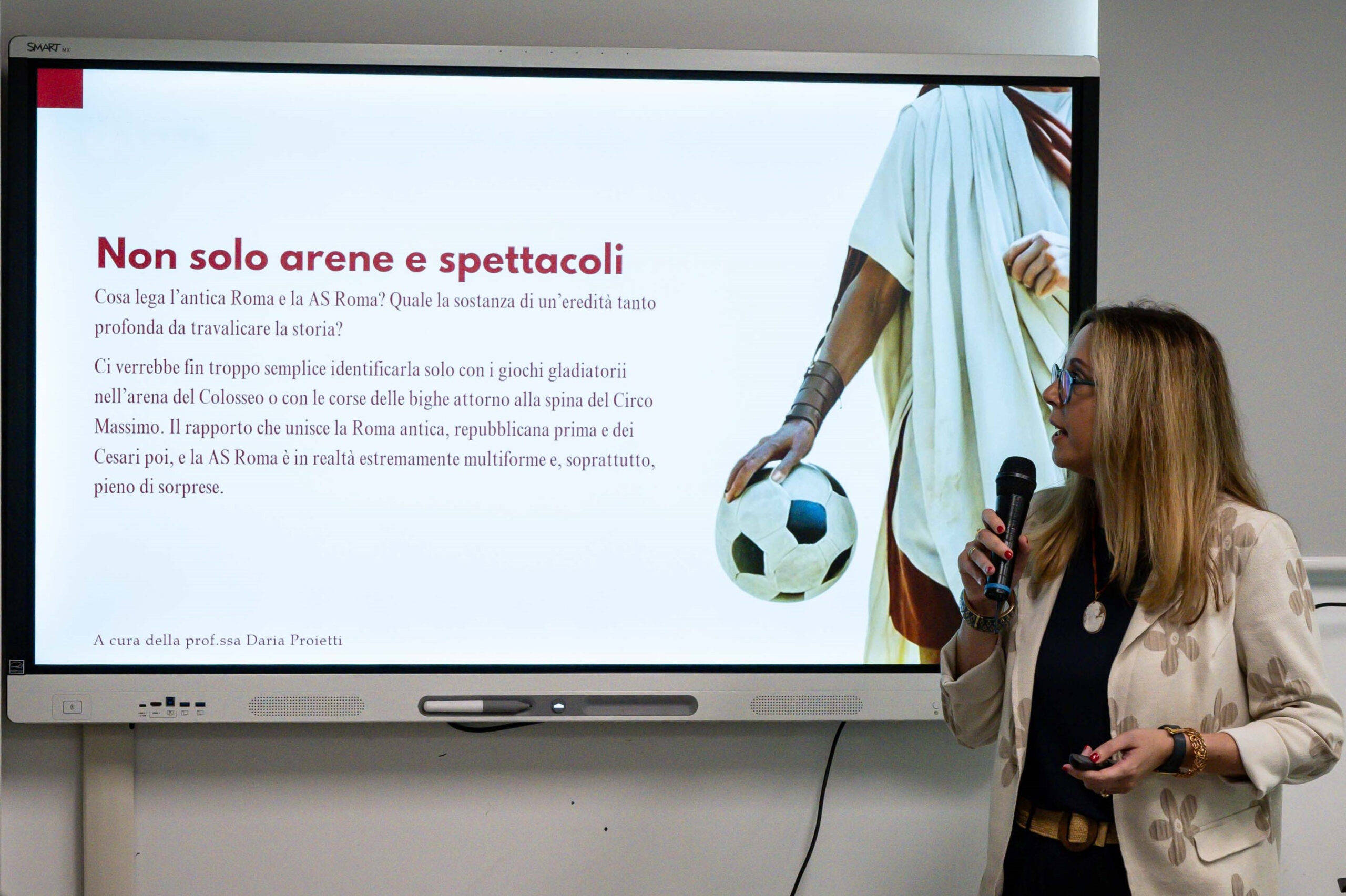 L’ultima lezione, “Noi siamo la Roma! Storia di una grande squadra”, a cura del Prof. Alessandro Boetani, ha riguardato la storia del Club e lo stretto legame tra la Roma e il suo popolo. Un racconto attraverso i momenti più importanti della Società giallorossa e dei suoi protagonisti. Per tutti gli studenti, un bagno di storia romana e romanista per ribadire il legame inscindibile tra la squadra giallorossa e la Città Eterna.