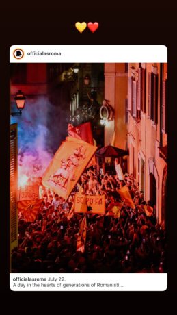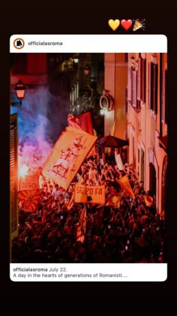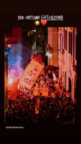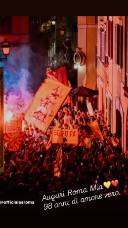 Oggi, 22 luglio, si celebra il compleanno del club giallorosso: l’AS Roma compie 98 anni. Come da tradizione, i tifosi romanisti si sono radunati nella serata di ieri per le vie della Capitale, in attesa della mezzanotte, per dare il via ai festeggiamenti del 98° anniversario dalla fondazione del club. Cori, bandiere, fumogeni e tanto amore hanno colorato la notte romana. Intanto, iniziano ad arrivare anche i messaggi di auguri da parte dei giocatori della Roma, che attraverso i social hanno voluto rendere omaggio al club.