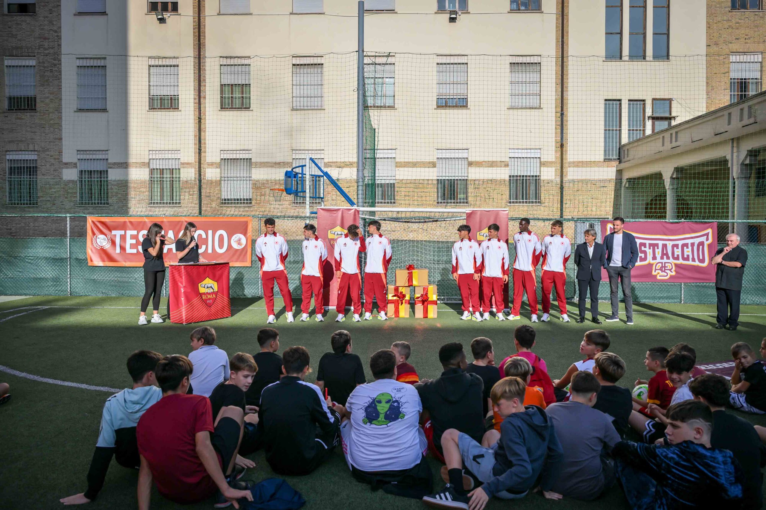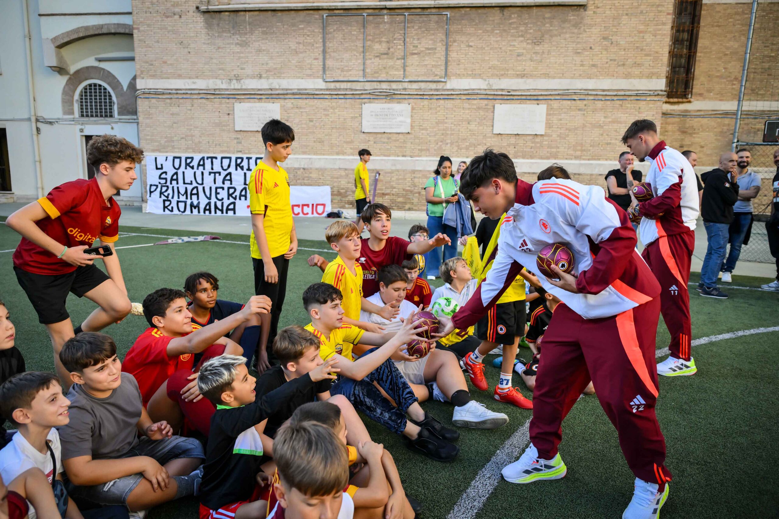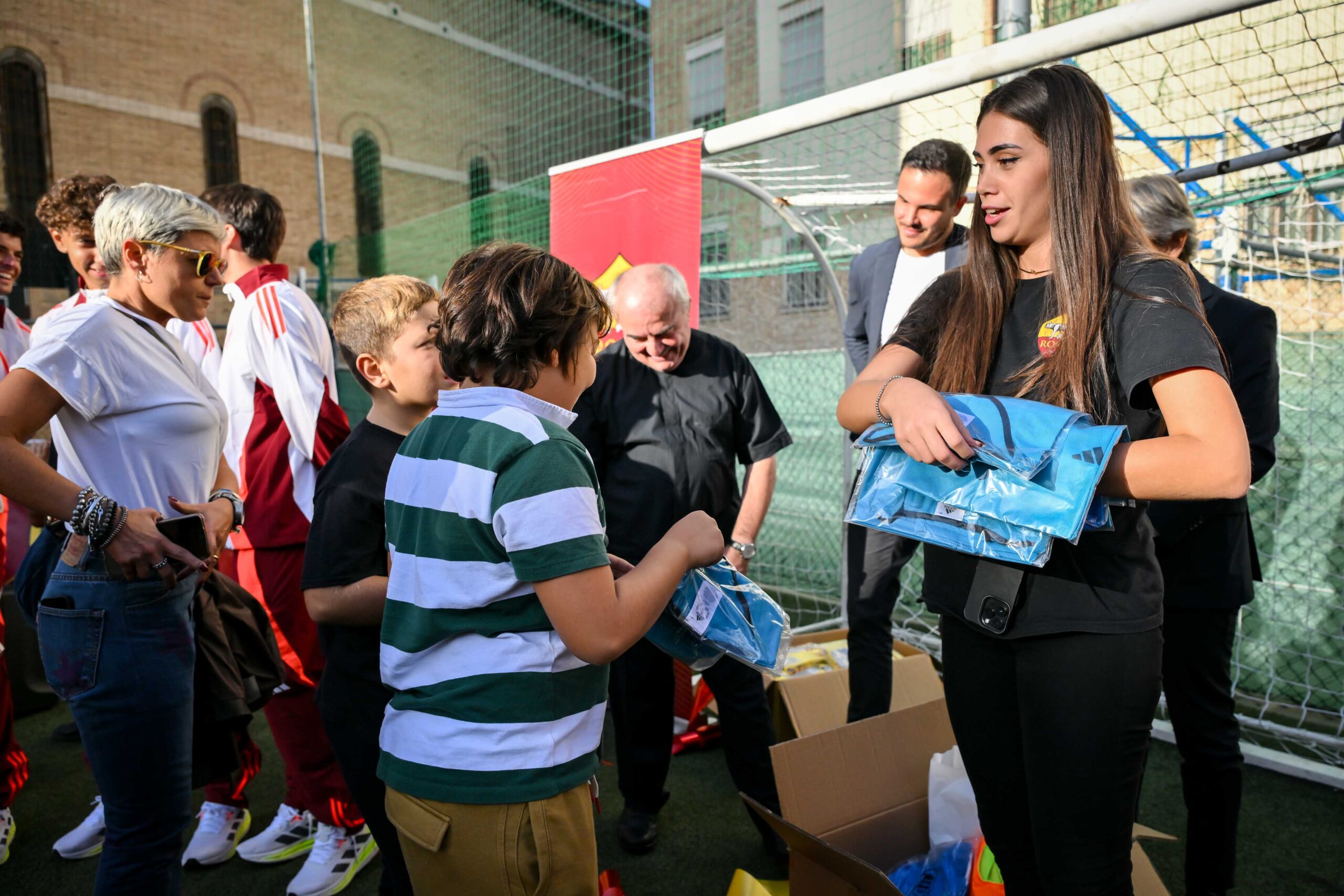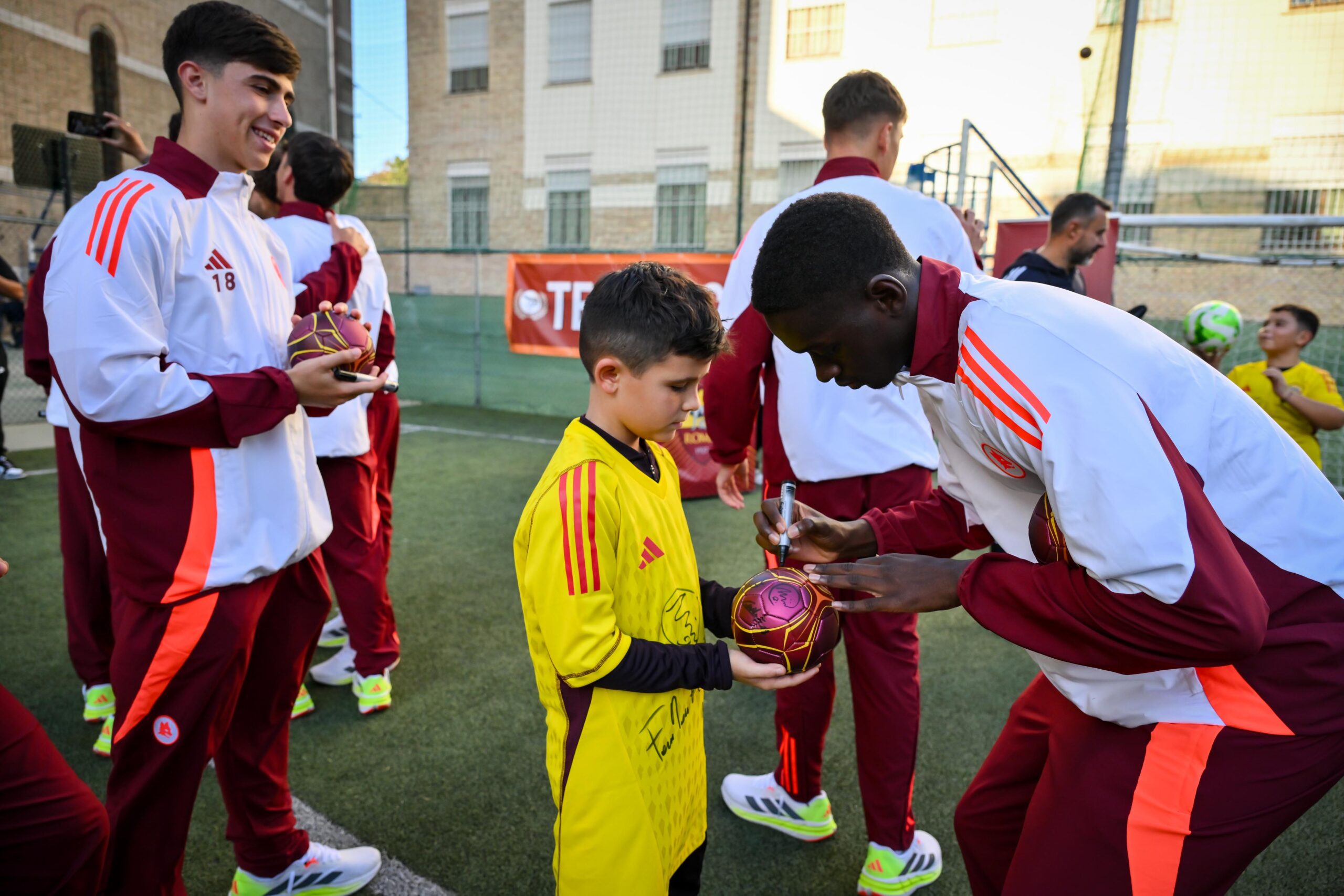 L’evento “Let’s Play Together”, ideato per rafforzare il legame con il territorio e promuovere l’importanza dello sport soprattutto tra i ragazzi delle fasce più svantaggiate, si è svolto con il supporto del Roma Club Testaccio all’Opera Salesiana di Via Bodoni, dove la delegazione giallorossa guidata da Alberto De Rossi e Simone Ricchio ha portato in dono i kit da gioco per le cinque squadre dei bambini del quartiere, intrattenendosi con loro per una dimostrazione pratica sulle tecniche di base del calcio, dai tiri in porta ai calci da fermo.
