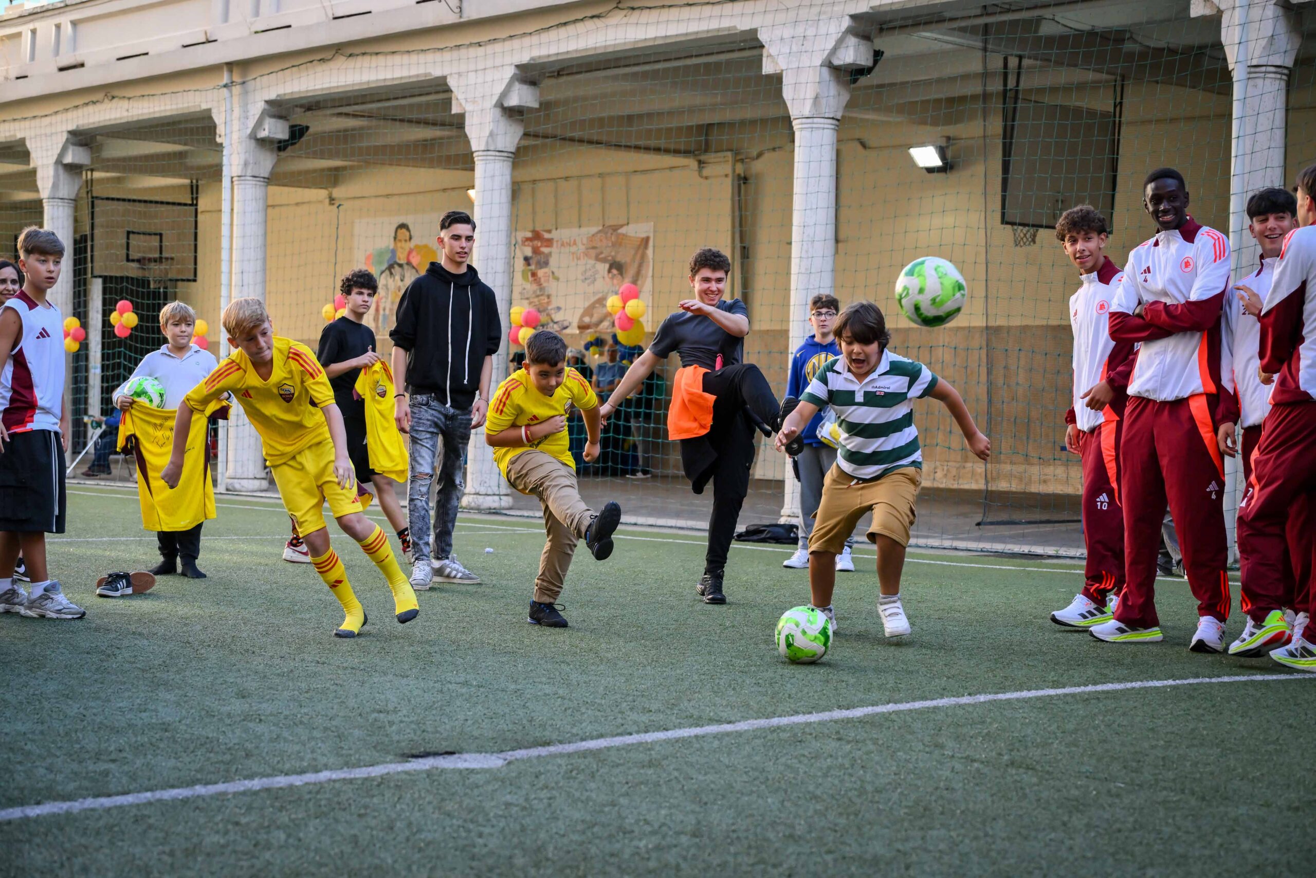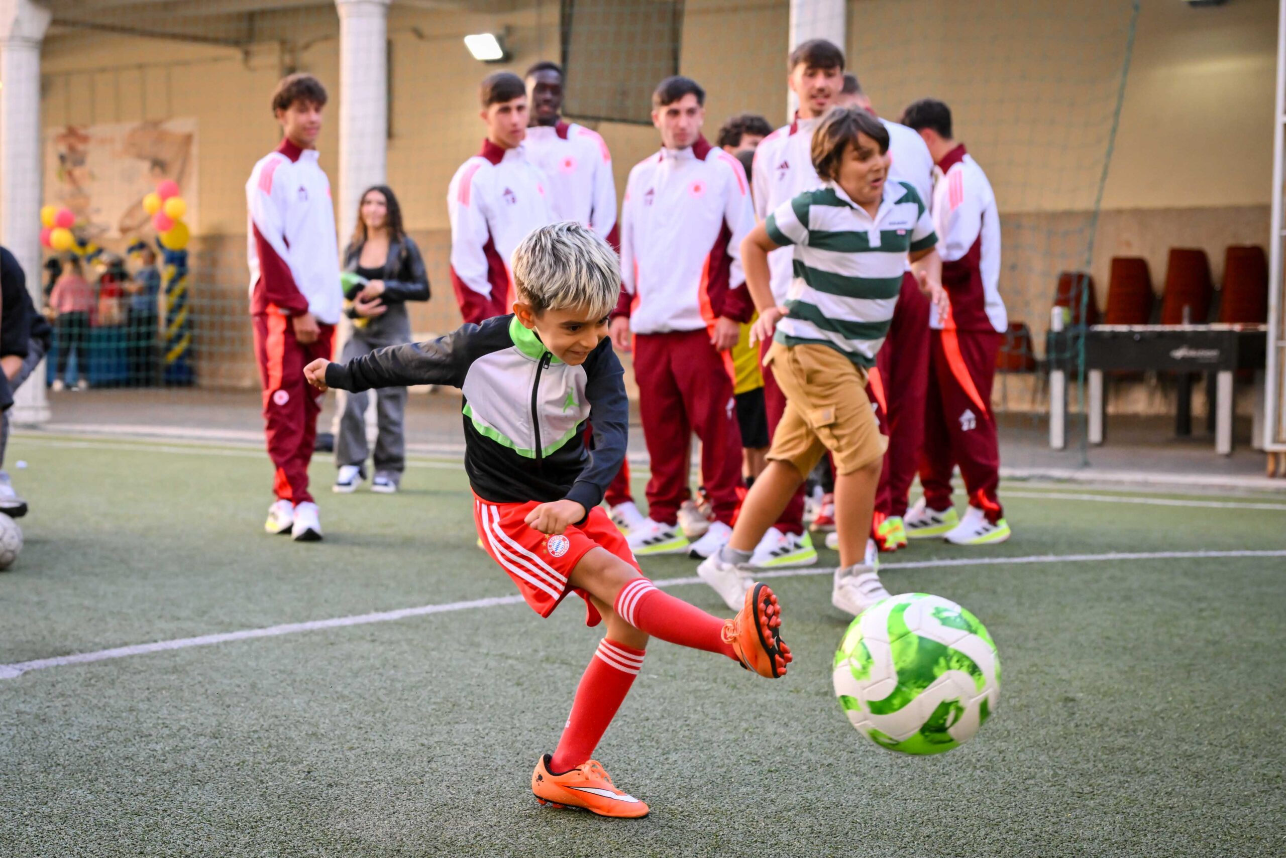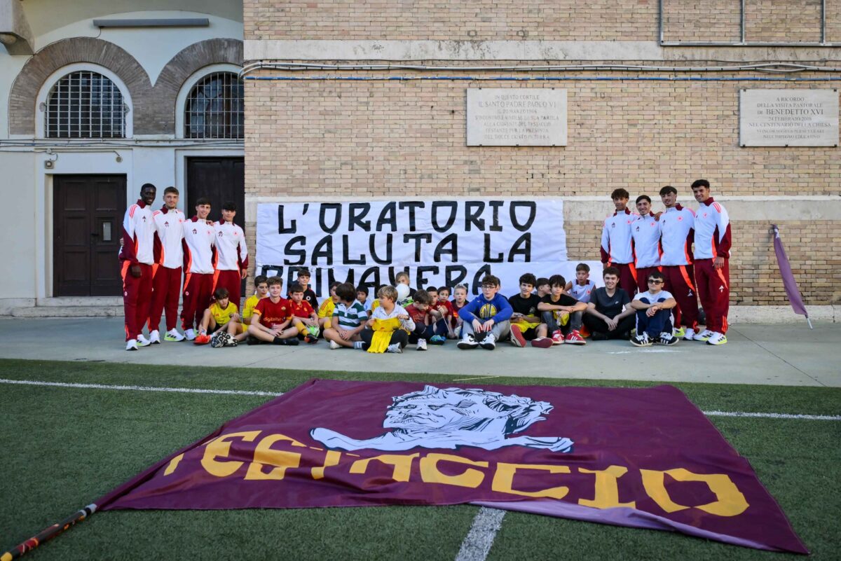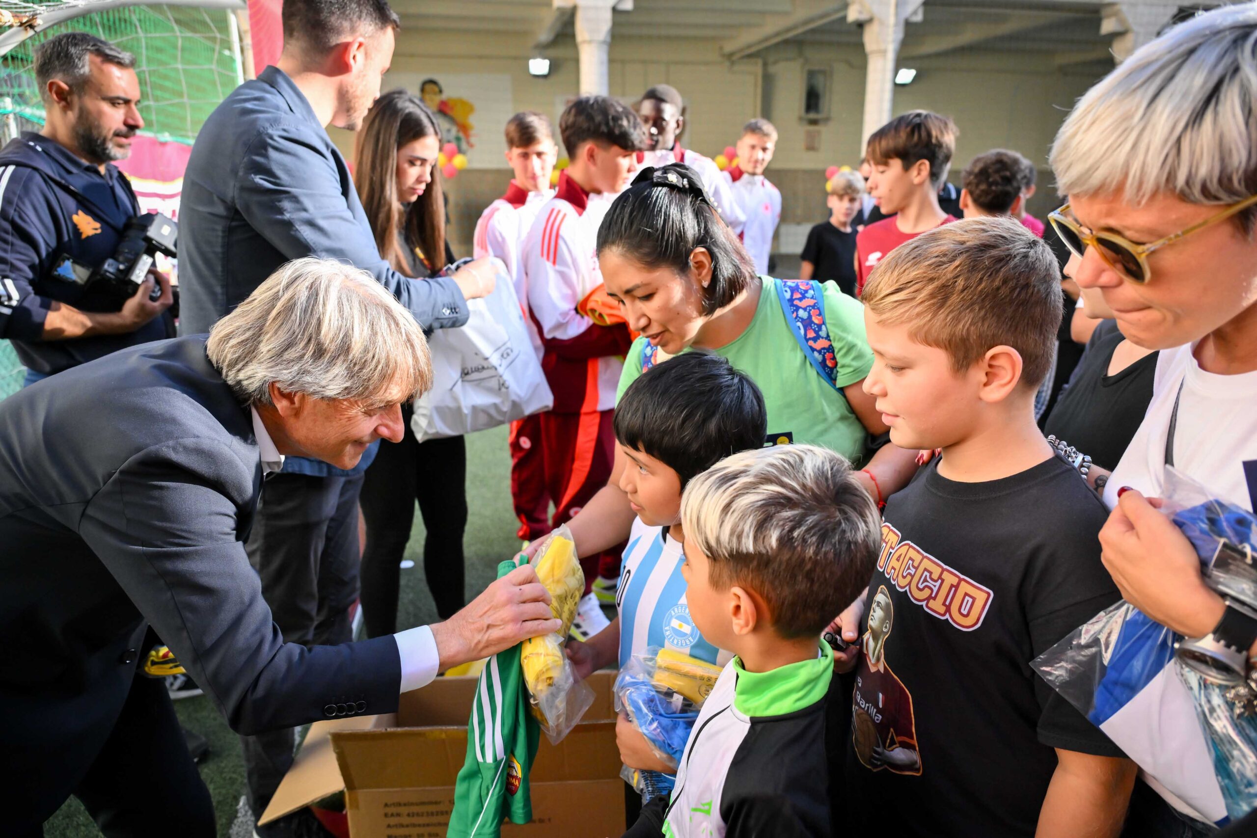 L’evento “Let’s Play Together”, ideato per rafforzare il legame con il territorio e promuovere l’importanza dello sport soprattutto tra i ragazzi delle fasce più svantaggiate, si è svolto con il supporto del Roma Club Testaccio all’Opera Salesiana di Via Bodoni, dove la delegazione giallorossa guidata da Alberto De Rossi e Simone Ricchio ha portato in dono i kit da gioco per le cinque squadre dei bambini del quartiere, intrattenendosi con loro per una dimostrazione pratica sulle tecniche di base del calcio, dai tiri in porta ai calci da fermo.