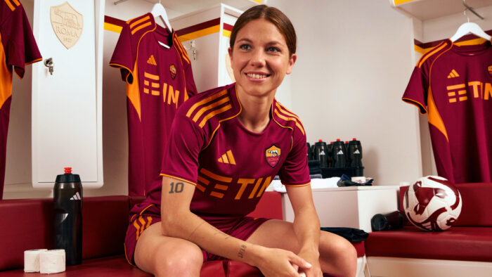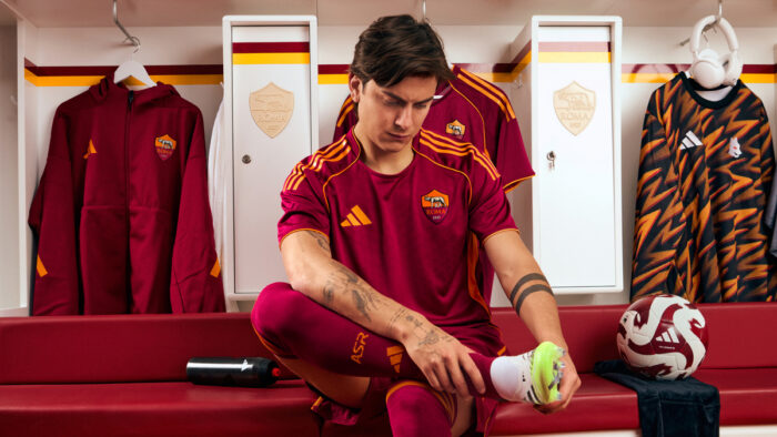 AS Roma e adidas presentano il nuovo Kit Home 2025/26, che rivisita in chiave moderna elementi grafici e design delle maglie del passato più amate.
