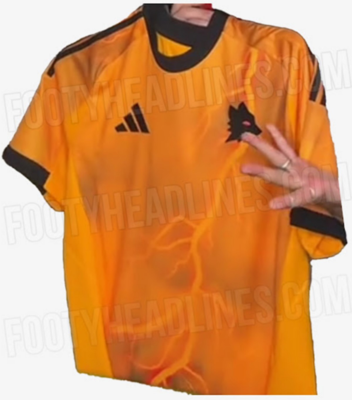 La maglia da trasferta dell’AS Roma 25-26 presenta un motivo a fulmine in onore del dio Giove.