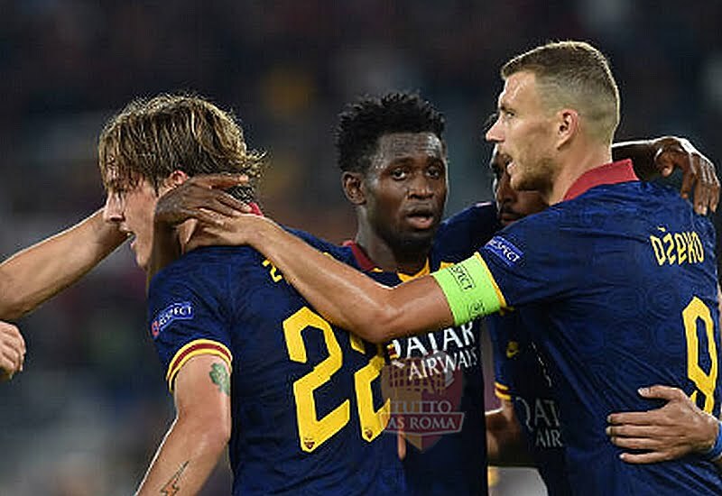 Zaniolo esulta con Dzeko gol Roma-Basaksehir - Photo by Getty Images