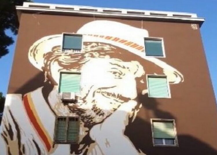 Cappello a falda larga, sorriso gentile, un velo di malinconia nello sguardo. Appare così Gigi Proietti, scomparso il 2 novembre, nella monumentale opera – si sviluppa su una superficie di 11 x 15 metri – realizzata da Lucamaleonte al Tufello. Il progetto, presentato da Regione Lazio, Ater, AS Roma, Fondazione Roma Cares e Fondazione Pastificio Cerere, è nato come risposta a una richiesta avanzata dagli abitanti del quartiere all’Ater.