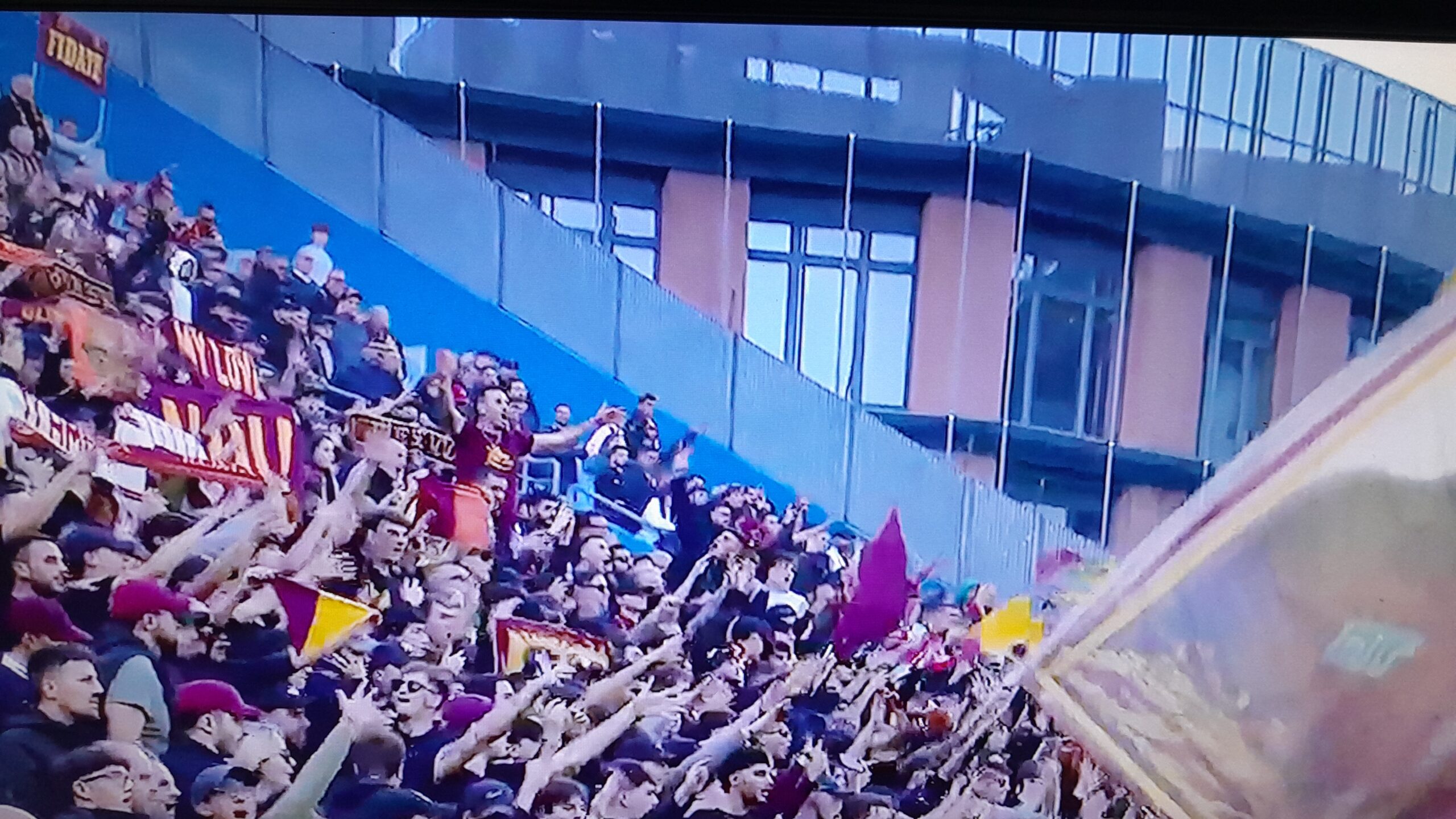 Proprio mentre Dybala porta la Roma in vantaggio, i tifosi cominciano la loro partita, cantando e sventolando al cielo i propri colori. Il primo pensiero va a Beatrice, la ragazza morta tragicamente a 20 anni sulla Cristoforo Colombo pochi giorni fa. Poi l’inno, con la sciarpata che abbraccia tre quarti di stadio.