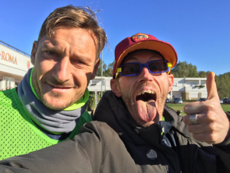 Le foto con Totti e Spalletti, e una carica niente male in vista dal derby da parte di un tifoso decisamente speciale. Ieri Leonardo Cenci, un “ragazzo” di 43 anni a cui nel 2012 è stato diagnosticato un tumore ai polmoni al quarto stadio, ha passato la giornata a Trigoria per il “life coaching pre-derby” scattando selfie e incoraggiando la squadra. Una diagnosi che non lascia scampo, un cancro inoperabile.