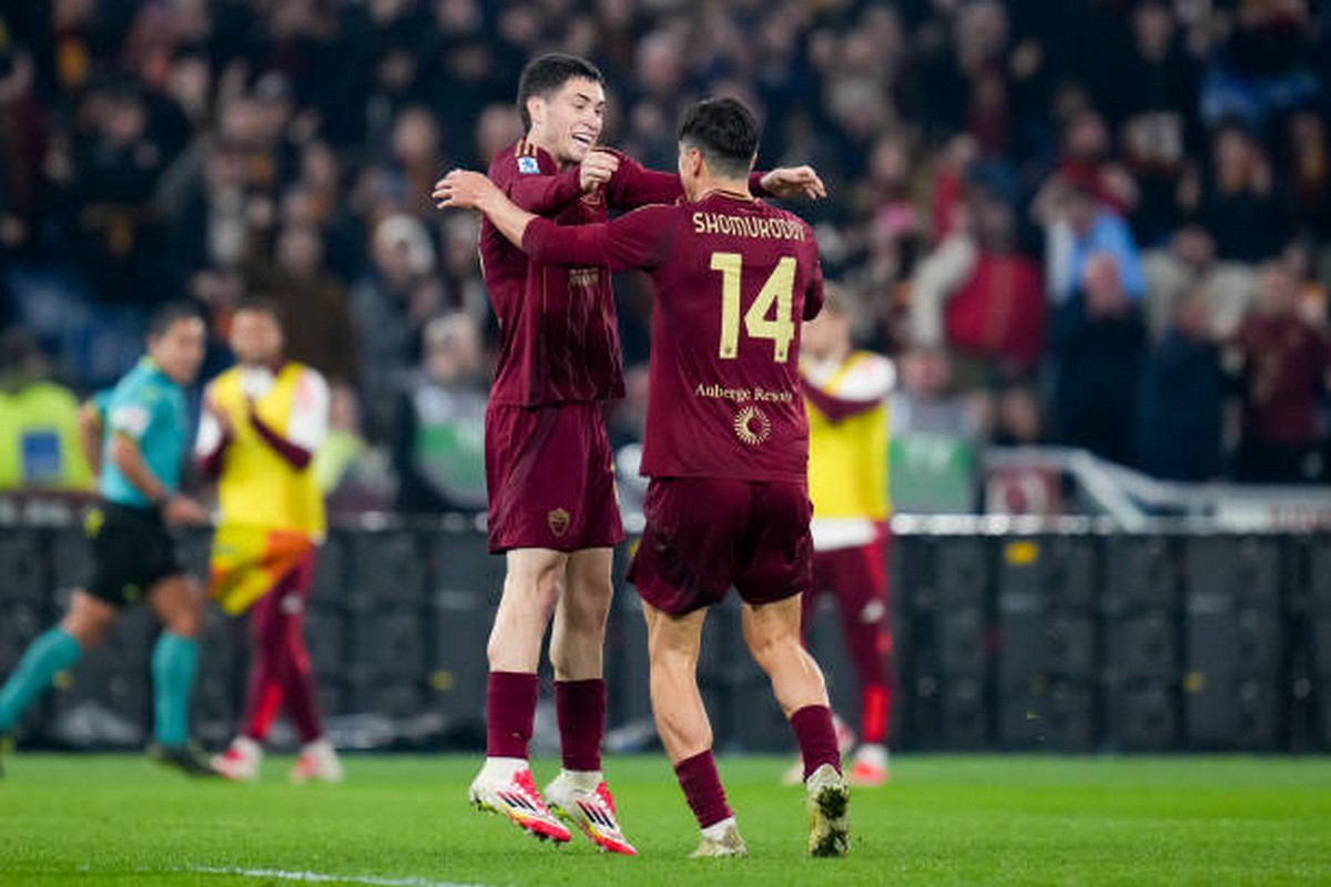 Shomurodov Esulta gol con Soulé Roma-Verona 19042025