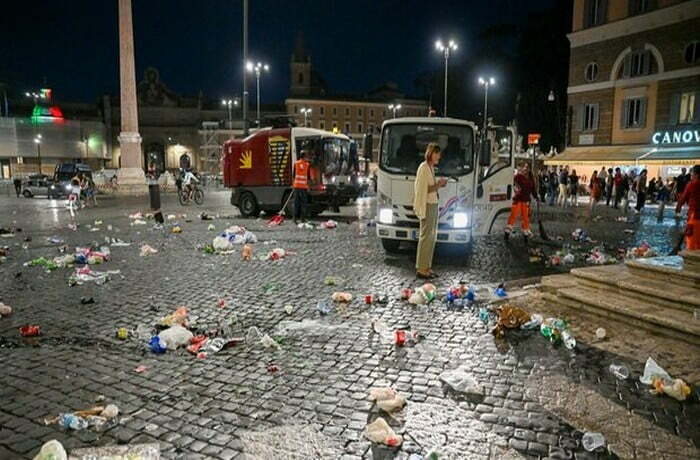 Centinaia di sostenitori spagnoli si sono radunati sotto l’obelisco – a due passi da via del Corso – per trascorrere un lungo prepartita tra alcol, vandalismo, fumogeni e cori, in attesa di essere scortati all’Olimpico. Nessun incidente o danneggiamento, ma gli andalusi hanno lasciato la piazza in condizioni indecorose.