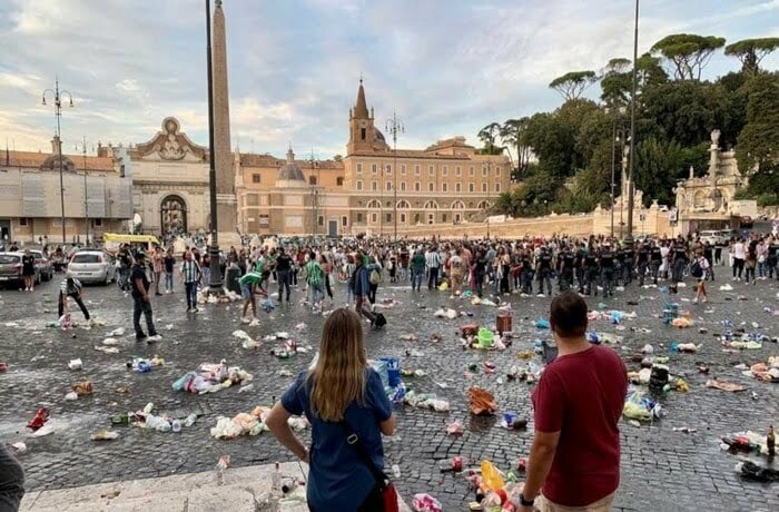 Dopo che Piazza del Popolo è stata devastata dagli incivili e barbari spagnoli, popolo di gran lunga al di sotto di civiltà preistoriche, molto più evolute, il Sindaco di Roma, Roberto Gualtieri, si è espresso sullo scempio della piazza monumentale e storica della Capitale: “Il comportamento dei tifosi del Betis Siviglia è stato inaccettabile. Tesori di Roma come Piazza di Spagna o Piazza del Popolo non devono diventare luoghi di caos e inciviltà. Il lavoro delle forze dell’ordine è encomiabile ma servono misure perché questo non si ripeta mai più”, le parole del primo cittadino.