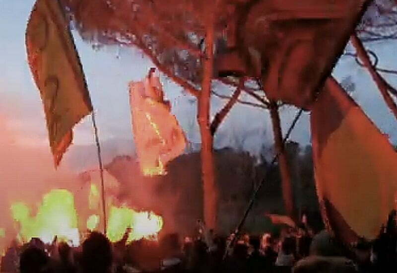 I tifosi hanno anche alzato uno striscione con la scritta “ASR” fissato ad una gru per farlo osservare anche ai giocatori che sono all’interno di Trigoria. Lo stesso è stato anche illuminato. Al momento dell’innalzamento, oltre a cori e fumogeni, a far da contorno, una quantità enorme di bandiere.
