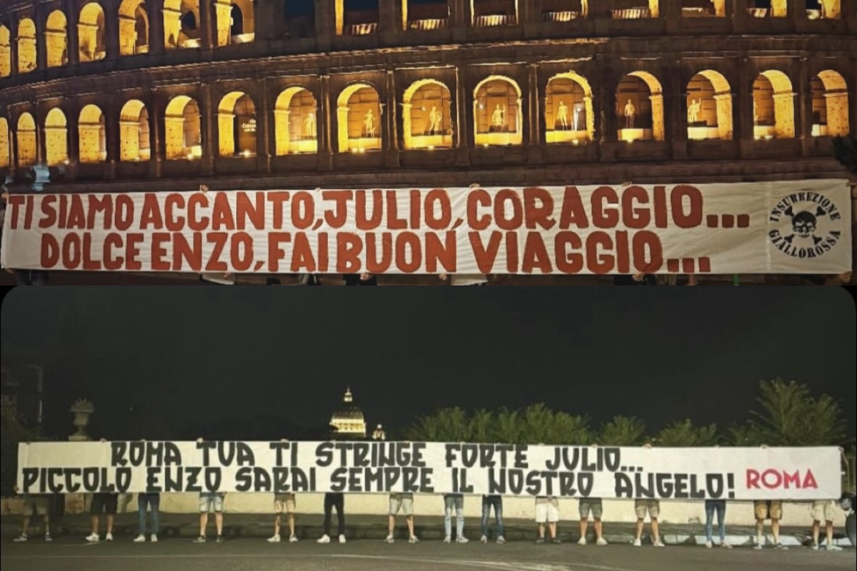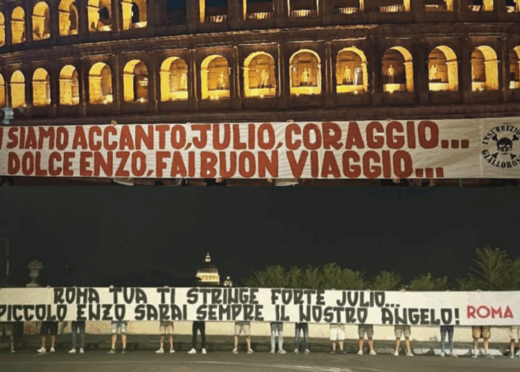 Nella serata, in vari quartieri della Capitale, sono comparsi striscioni che hanno espresso vicinanza e conforto attorno a Julio Sergio, ex portiere della Roma, colpito da un lutto devastante: la perdita del figlio Enzo, venuto a mancare a causa di una grave malattia. In particolare, davanti al Colosseo, il gruppo Insurrezione Giallorossa ha fatto sentire la propria voce: “Ti siamo accanto, Julio, coraggio. Dolce Enzo, fai buon viaggio”. Un altro messaggio, toccante e sincero, è arrivato dal Gruppo Roma: “Roma tua ti stringe forte Julio. Piccolo Enzo sarai sempre il nostro angelo! Roma”.